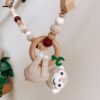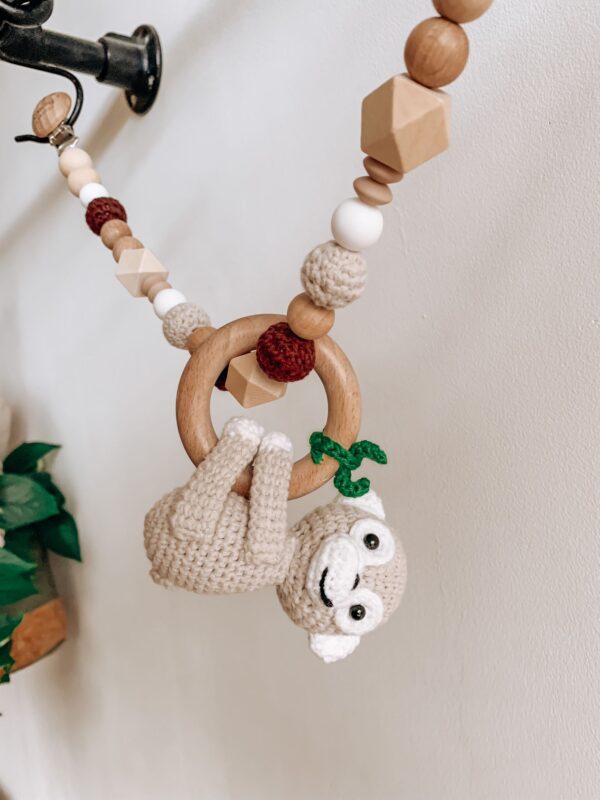 Deze multifunctionele en handgemaakte en wagenspanner is zowel een wagenspanner als een rammelaar/bijtring. Je kunt de rammelaar met het aapje van de ketting afhalen zodat jouw kleine daar mee kan spelen, dan houd je nog steeds een leuke wagenspanner over mét naam. Je kunt het aapje er ook aan laten hangen. In het lijfje van het gehaakte aapje zit een belletje, zodat het geluid maakt als je het beweegt. Super leuk voor de baby om dit te gaan ontdekken.